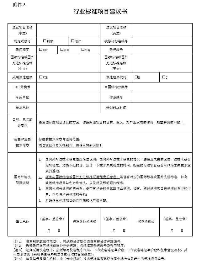 b.《行業(yè)標準項目建議書》(一式三份,原件簽字、蓋單位公章,附電子版),見附件3