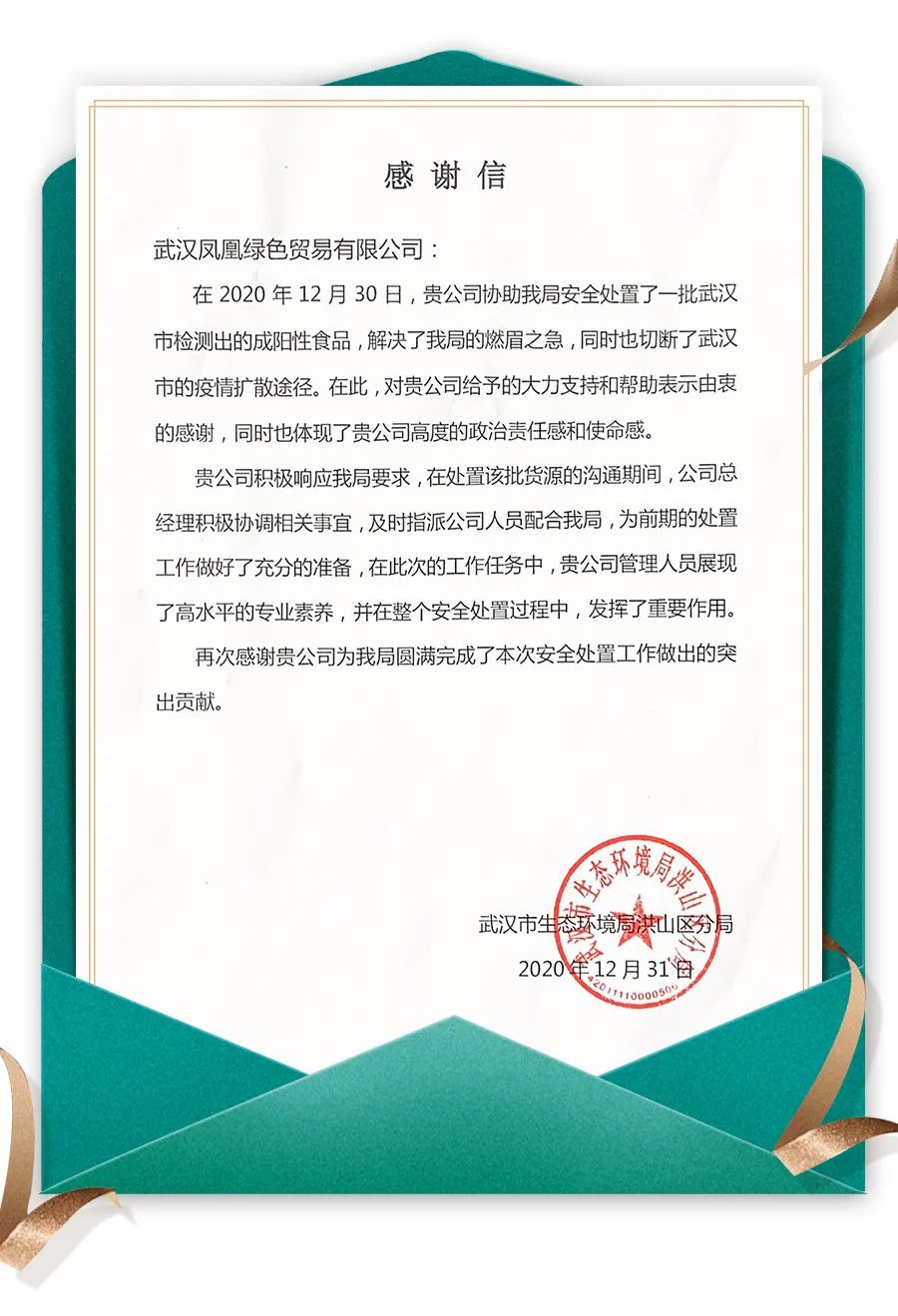 事后,武漢市生態(tài)環(huán)境局向武漢鳳凰項目發(fā)來感謝信,信中表示,在此次工作任務中,武漢鳳凰項目體現(xiàn)出了高度的政治責任感和使命感,展現(xiàn)出高水平的專業(yè)素養(yǎng),發(fā)揮了重要作用。