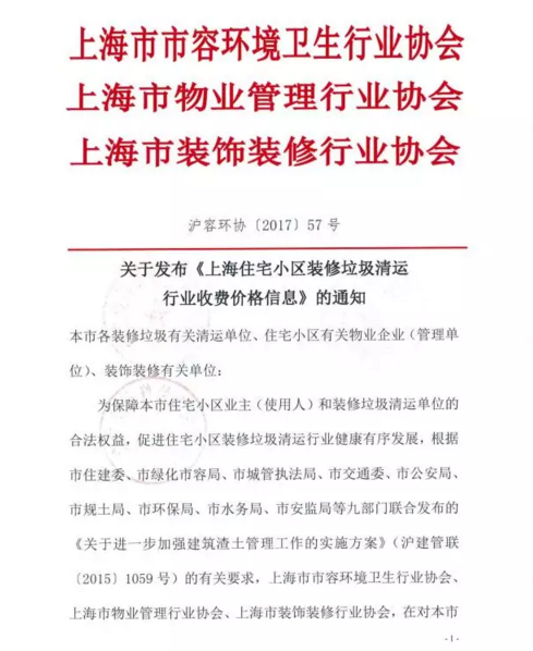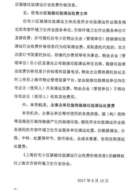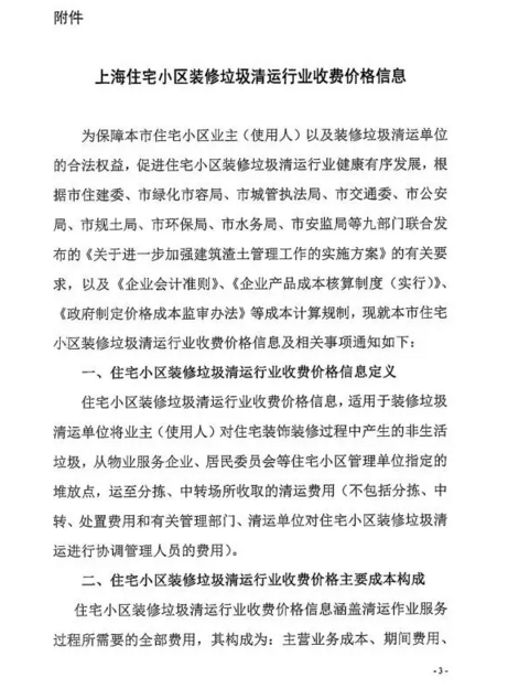 《上海市住宅小區(qū)裝修垃圾清運行業(yè)收費價格信息》全文內容如下: