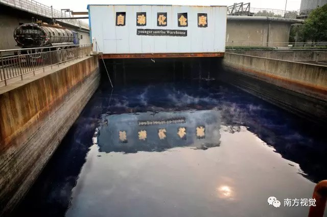 △在凌晨3到5點(diǎn)之間,紡織工廠向河里傾倒的污染物,拍攝于浙江寧波。