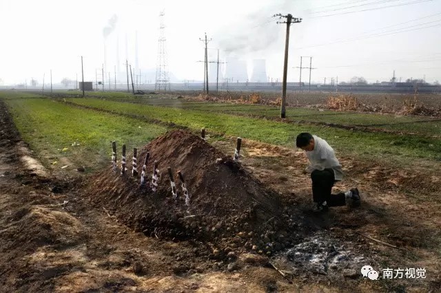 △一名男子站在去世兄弟的墳前,拍攝于河北邢臺(tái)。