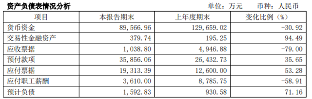 資產(chǎn)負(fù)債表顯示,應(yīng)收票據(jù)下降偏多,相較上年末下降79.00%,原因主要是承兌匯票到期兌付;交易性金融資金增長較高,相較上年末增長94.49%,原因是子公司期貨投資盈利;預(yù)計負(fù)債也較上年末增長71.16%,公司主要用于預(yù)提的大修費等。同時,貨幣資金變動相較上年末下降30.92%,主要是用銀行存款償還部分綠色公司債券;預(yù)付款項變動相較上年末增長35.65%,主要是預(yù)付材料及設(shè)備款增加。