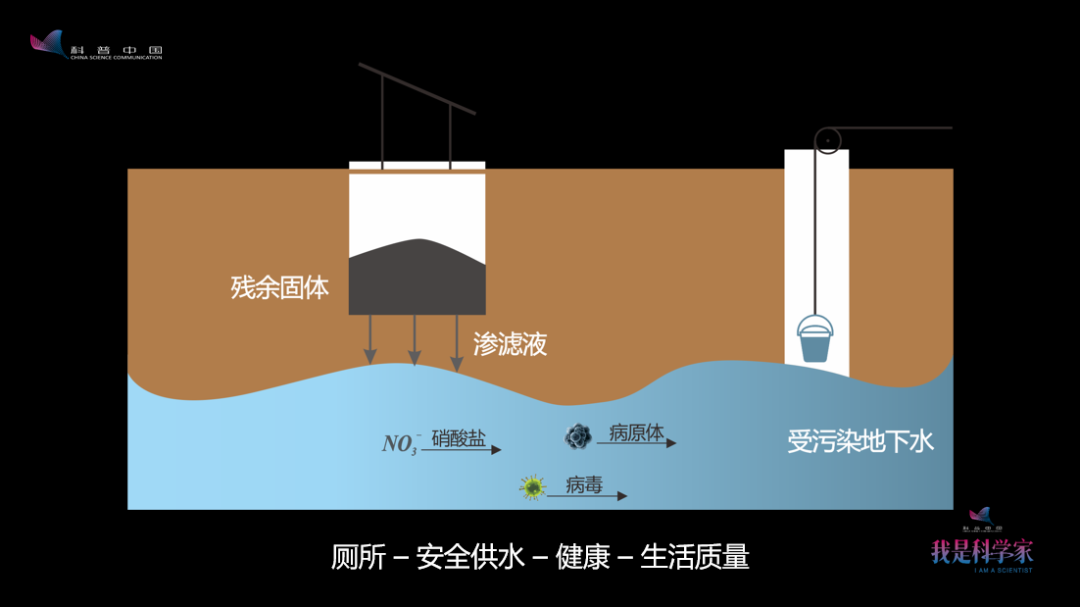從科學(xué)的角度看,糞污滲入地下會(huì)攜帶病毒、病原體。如果廁所和取水的地方距離不遠(yuǎn),或者是上下游的關(guān)系,就會(huì)污染水源,導(dǎo)致供水不安全,影響到人的健康,進(jìn)而導(dǎo)致人生病、生活質(zhì)量下降。