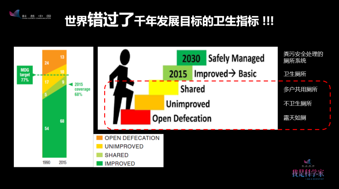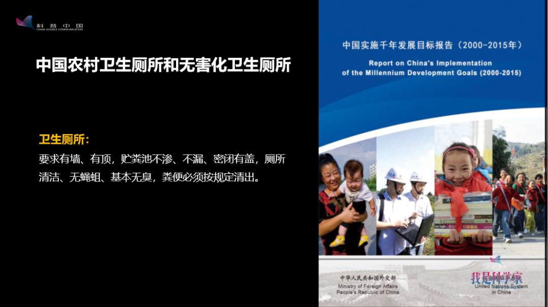 盡管在實(shí)現(xiàn)這個(gè)千年發(fā)展目標(biāo)的進(jìn)程中,最終的目標(biāo)沒(méi)有實(shí)現(xiàn),但是廁所的覆蓋率還在逐漸增加。反映到兒童死亡率上,即是死亡率的逐年下降。這是一個(gè)大好事,也給我們很多動(dòng)力去堅(jiān)持不懈地做廁所的事情。更好的消息是——我們國(guó)家在千年發(fā)展目標(biāo)里發(fā)布了白皮書,宣布中國(guó)滿足了千年發(fā)展目標(biāo)的要求。