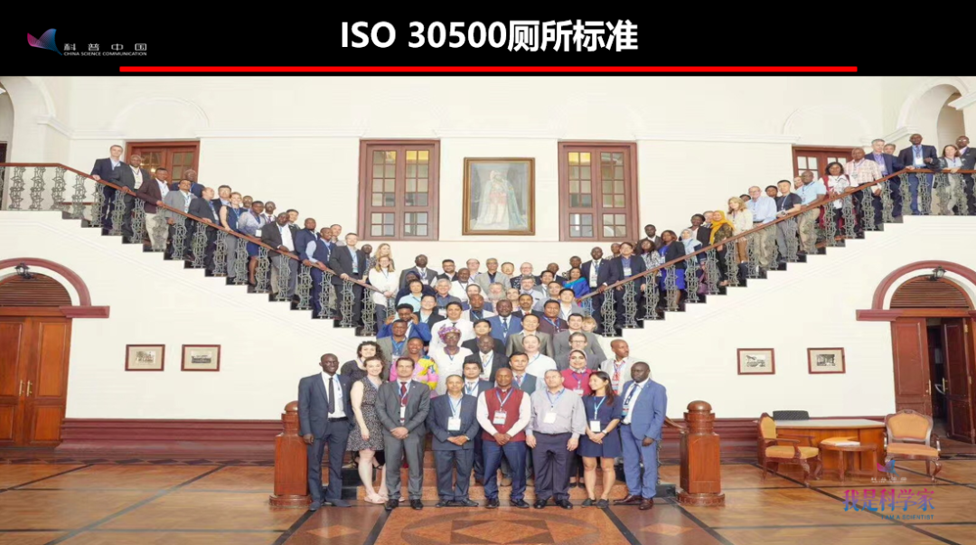 除了這個(gè)標(biāo)準(zhǔn),國(guó)際上有一個(gè)ISO 30500的廁所標(biāo)準(zhǔn),它也是針對(duì)我們要研發(fā)的廁所提出了一些控制的指標(biāo)。這個(gè)標(biāo)準(zhǔn)有40多個(gè)國(guó)家的代表去參加編寫,表明它還是非常重要的,也受到了各個(gè)國(guó)家的關(guān)注。我也是代表中國(guó)參加了標(biāo)準(zhǔn)的編寫。這里面最后一張照片,就是我們這個(gè)標(biāo)準(zhǔn)最后完成的時(shí)候,40多個(gè)國(guó)家的代表的一個(gè)合影。
