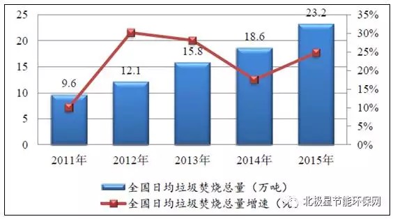 垃圾焚燒可以快速處理堆積成山的垃圾,有效減小垃圾的體積50%-90%,同時(shí)通過焚燒發(fā)電,既解決了垃圾填埋的占地、污染問題,又實(shí)現(xiàn)了能源的清潔回收利用。目前,我國城市生活垃圾累積堆存量已達(dá)70 億噸,據(jù)國家統(tǒng)計(jì)局?jǐn)?shù)據(jù)顯示,截止2013 年我國生活垃圾填埋比例占68.2%,垃圾焚燒占30.1%,而2014年、2015年、2016年垃圾焚燒一直保持快速增長的態(tài)勢。