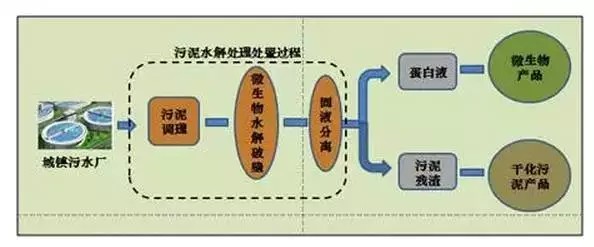 污泥微生物通過水解破壁處理后,其胞內(nèi)蛋白質(zhì)和水分得以釋放,再經(jīng)過固液分離后,可到含水率35-45%(減量70%以上)、有機物消減40-50%的污泥殘渣和可資源化利用的含蛋白液體。目前天津裕川環(huán)境在該方面已取得一定成績。