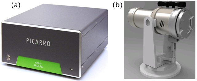 圖2.(a)原位點式CRDS監(jiān)測儀(b)區(qū)域開放式TDLAS監(jiān)測儀