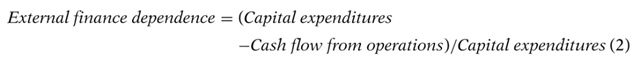 為了衡量企業(yè)能夠在多大程度上自行籌集資金,作者按照Whited(2006)和Duchin, Ozbas和Sensoy(2010)的方法構(gòu)建了如下指標(biāo),如式(3)所定義。作者進(jìn)一步將企業(yè)劃分為現(xiàn)金流流動(dòng)性強(qiáng)弱劃分:如果企業(yè)的指數(shù)高于中位數(shù),則被劃分為高流動(dòng)性,否則被劃分為低流動(dòng)性。