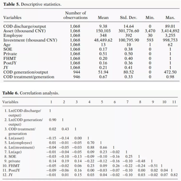 變量及其相關(guān)性的統(tǒng)計(jì)描述見(jiàn)文中的表5和表6。