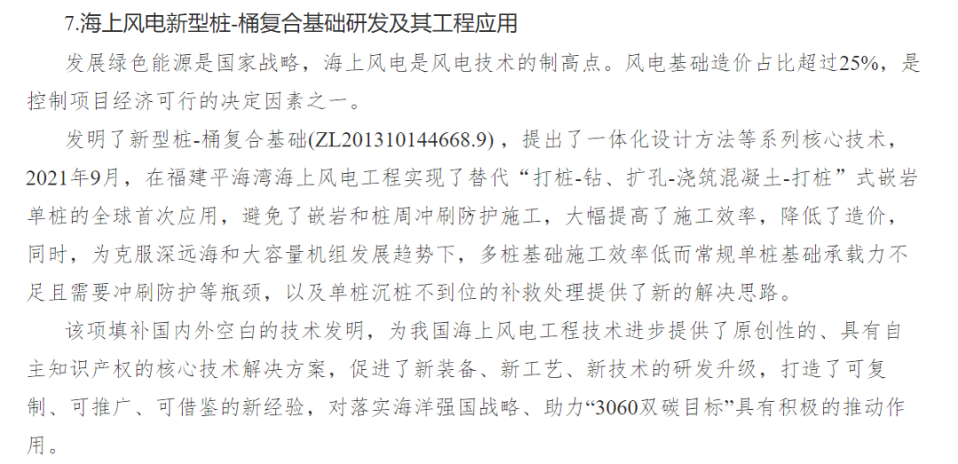 日前,華東院海上風(fēng)電“新型樁-桶復(fù)合基礎(chǔ)研發(fā)及其工程應(yīng)用”入選2021年度中國(guó)十大海洋科技進(jìn)展。這項(xiàng)由華東院發(fā)明并創(chuàng)新設(shè)計(jì)的核心技術(shù),不僅大幅提高了海上施工作業(yè)效率,也為破解海上風(fēng)電走向深遠(yuǎn)海、大機(jī)組過(guò)程中常規(guī)單樁基礎(chǔ)承載力不足等難題,提供可復(fù)制、可推廣、可借鑒的經(jīng)驗(yàn)與思路,為國(guó)家海洋技術(shù)領(lǐng)域發(fā)展、助力“3060雙碳目標(biāo)”,發(fā)揮積極作用。