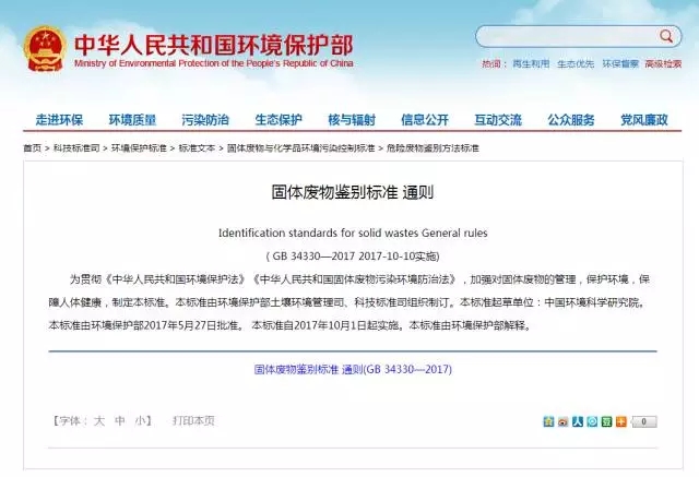 因此,為了統(tǒng)一各個(gè)檢驗(yàn)機(jī)構(gòu)或鑒別機(jī)構(gòu)鑒別固體廢物的尺度,保證鑒別質(zhì)量和鑒別結(jié)果的公正和可靠,環(huán)境保護(hù)部與國(guó)家質(zhì)量監(jiān)督檢驗(yàn)總局聯(lián)合發(fā)布《固體廢物鑒別標(biāo)準(zhǔn) 通則》(GB 34330-2017)。該標(biāo)準(zhǔn)是我國(guó)首次制定的關(guān)于固體廢物的鑒別標(biāo)準(zhǔn),具有強(qiáng)制執(zhí)行的效力。