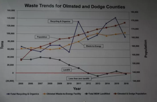 在會場有2位發(fā)言人講述了自己如何改進和提升焚燒廠的面貌和性能。一位是我們隨后去參觀的明尼阿波利斯的Hennepin焚燒廠,發(fā)言人是位老先生。從他如數(shù)家珍的ppt照片來看,他任職這個廠的年頭非常之久。他除了介紹這個焚燒廠的發(fā)展歷史以外,主要介紹了一個重要的技改提升,為了美觀將一面墻的門移動到了另一面墻(因為原來一面墻面對一個棒球場,從棒球場那邊看過來形象不佳),修改了垃圾車進出的通道,提高了工作效率。這個工作在中國人眼里看來幾乎是不值一提,因為中國正在建設(shè)大量的焚燒廠,我們正在滿足城市處理垃圾的主要功能,還無暇顧及門開在那邊是否美觀,通道如何布置可以提高多少效率,在我看來,這就是新進暴發(fā)戶和老鄉(xiāng)紳的區(qū)別: