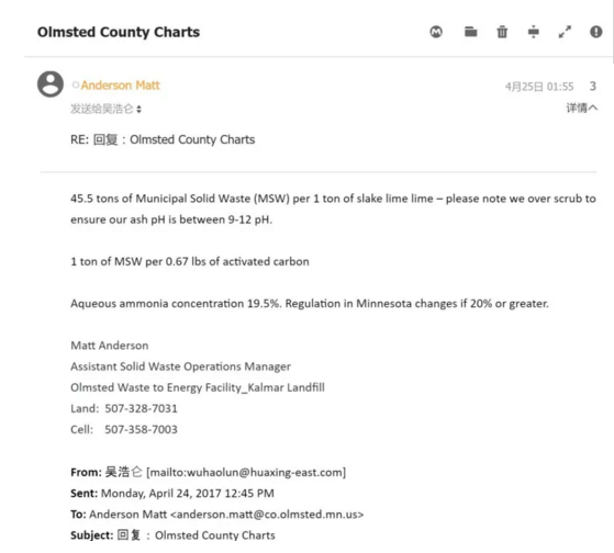 參觀的同時,我們交流了一下大致的排放指標,由于時間久了具體排放限值數(shù)據(jù)記不清了,但印象中其排放指標一般,甚至高于國內(nèi)現(xiàn)行的18485標準。回國后我查閱了相關(guān)資料,發(fā)現(xiàn)明尼阿波利斯的地方標準有所提高。其依據(jù)是我查閱了一個Olmsted焚燒廠3號線的環(huán)評報告,并注意到Olmsted的1.2號線的排放標準明顯寬于3號線的排放標準,有興趣的同志可以往上翻幾頁看看Olmsted廠的排放標準。