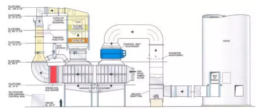 該廠主要燃料為城市生活垃圾,輔助燃料為天然氣。95MW的裝機容量,可供應55000個家庭。單臺鍋爐供熱能力為:284,400 lb/h。我們關(guān)注的煙氣區(qū)域分為2個部分,SDA+SCR。