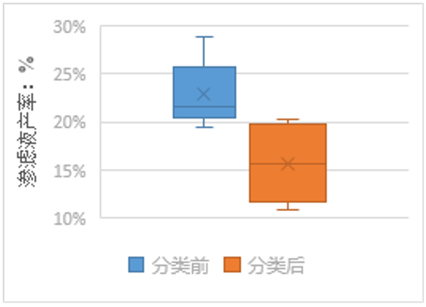 圖3  生活垃圾分類前后滲濾液產(chǎn)率分布對(duì)比圖