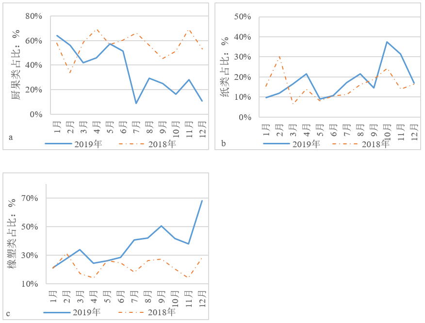 圖7  2018年與2019年生活垃圾分類前后主要成分占比趨勢(shì)