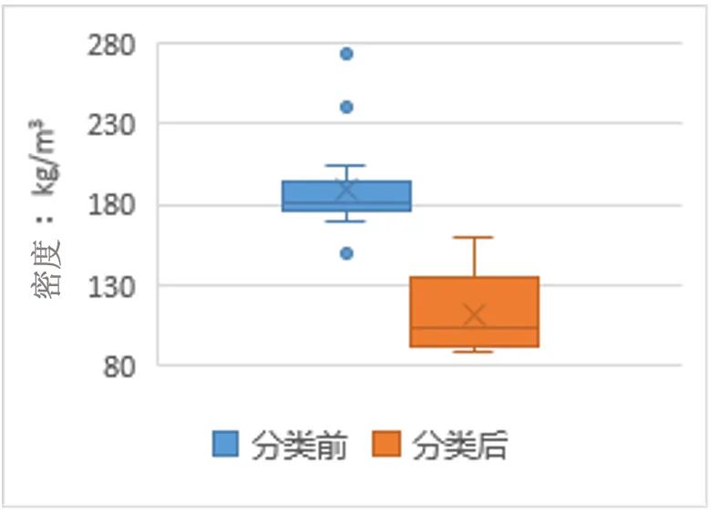 圖2  生活垃圾分類前后密度分布對(duì)比圖