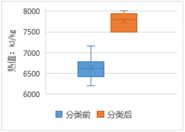 圖4  生活垃圾分類前后熱值分布對(duì)比圖