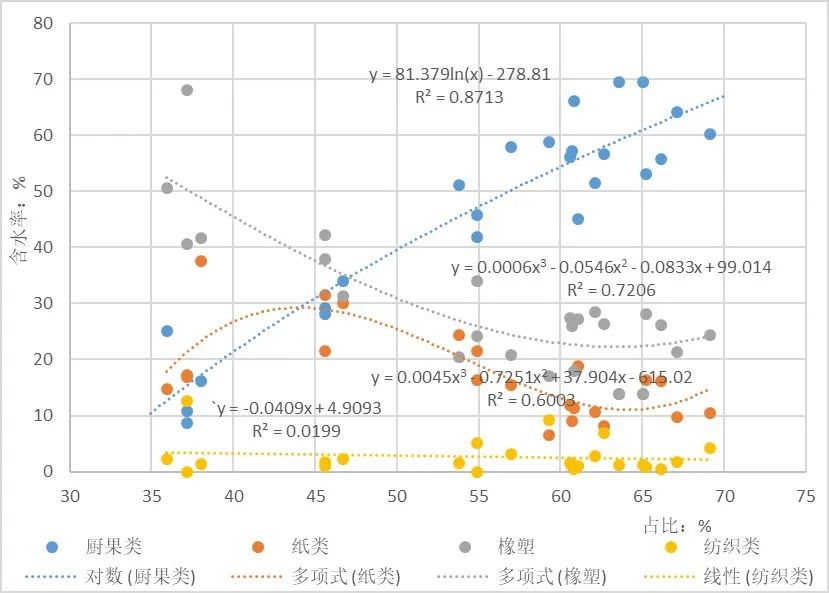 圖14  主要組分對(duì)垃圾含水率影響趨勢(shì)圖