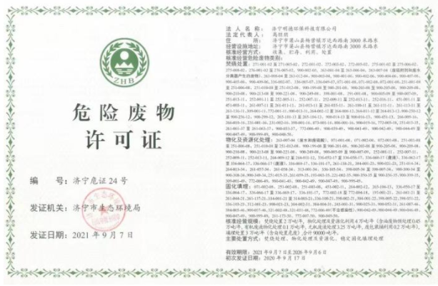▲ 濟(jì)寧明德項(xiàng)目成功申領(lǐng)5年期