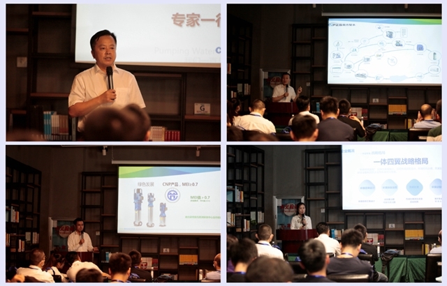 參觀環(huán)節(jié)結(jié)束后,南方泵業(yè)杭州銷售公司副總經(jīng)理金甲根金總向來(lái)訪專家領(lǐng)導(dǎo)致歡迎辭,對(duì)于本次浙江大學(xué)建筑設(shè)計(jì)研究院的考察指導(dǎo)表示感謝。隨后南方泵業(yè)分別從公司概況、建筑用泵產(chǎn)品、成套給水排水智慧化技術(shù)應(yīng)用這三個(gè)方面進(jìn)行了匯報(bào)分享。專家們對(duì)于南方泵業(yè)生產(chǎn)的CDM輕型立式多級(jí)離心泵、SS高效靜音水務(wù)專用泵等應(yīng)用于建筑行業(yè)的多款高能效泵產(chǎn)品給予了高度贊賞,特別是南方智水在行業(yè)內(nèi)率先實(shí)現(xiàn)并使用了變壓控制方法,進(jìn)行壓力優(yōu)化,提升設(shè)備運(yùn)行效率,實(shí)現(xiàn)節(jié)能降耗目標(biāo),引起了參會(huì)嘉賓的集中關(guān)注。