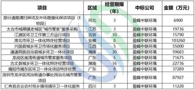 (盈峰環(huán)境上半年億級(jí)項(xiàng)目中標(biāo)情況,圖源:中國(guó)固廢網(wǎng))