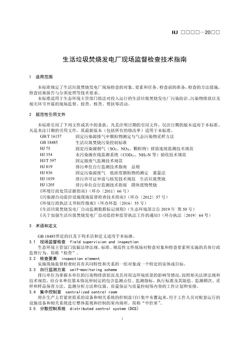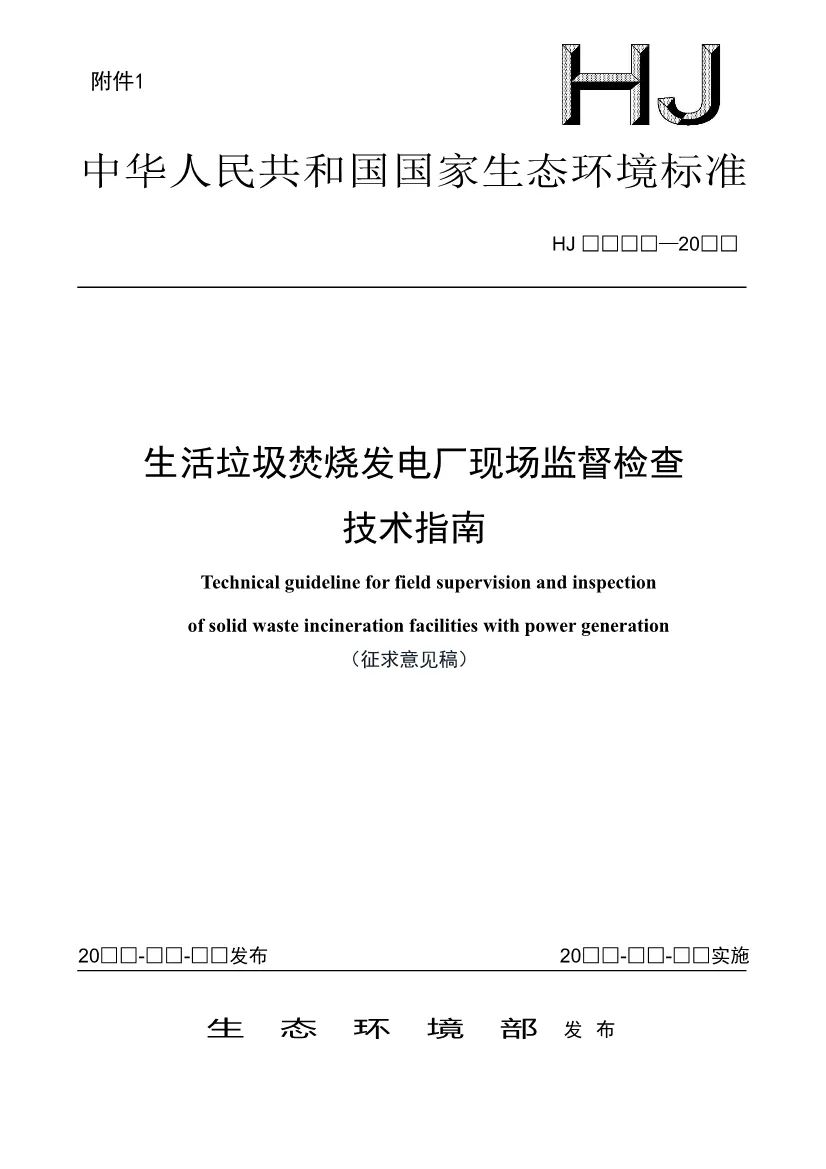 附件:1.生活垃圾焚燒發(fā)電廠現(xiàn)場監(jiān)督檢查技術(shù)指南(征求意見稿)