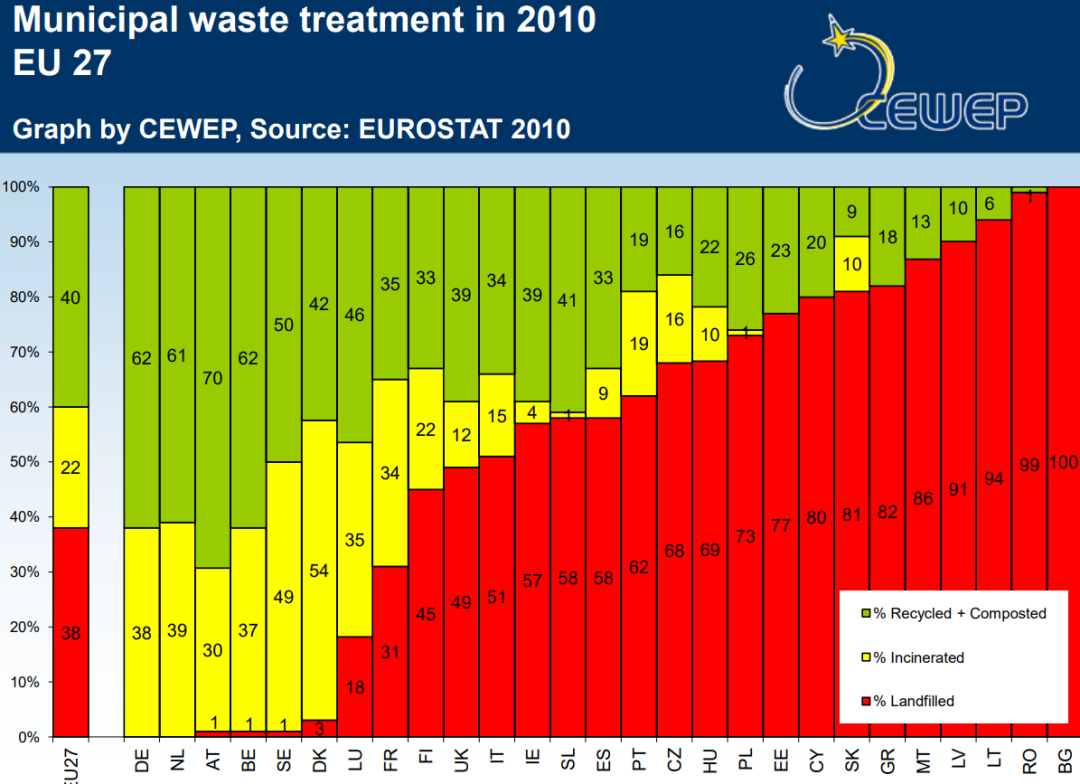 歐洲23國的垃圾焚燒占整個(gè)垃圾處理量的比例,已從2010年的22%,增長至2019年的27%。