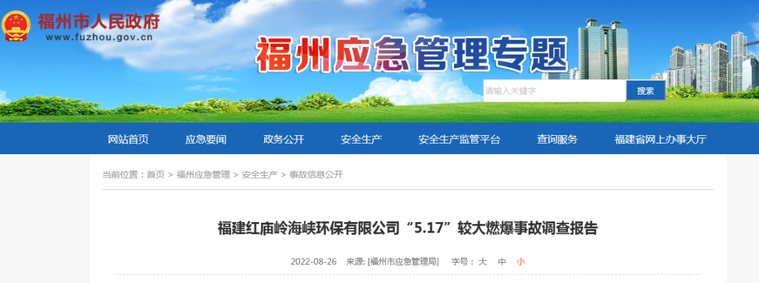 2022年5月17日上午8時(shí)54分,福建紅廟嶺海峽環(huán)保有限公司10萬方調(diào)節(jié)池上方外包作業(yè)人員違規(guī)用氬弧焊對(duì)除臭設(shè)施風(fēng)管漏點(diǎn)進(jìn)行焊接施工時(shí)發(fā)生燃爆,造成3人死亡,3人受傷,5#、6#池頂蓋坍塌,池頂除臭裝置損壞,直接經(jīng)濟(jì)損失約1800萬元。事故發(fā)生后,尹力書記、趙龍省長(zhǎng)、郭寧寧常務(wù)副省長(zhǎng)、林文斌副省長(zhǎng)等領(lǐng)導(dǎo)第一時(shí)間做出重要批示,要求全力搜救失聯(lián)人員,全力搶救受傷人員;嚴(yán)格救援現(xiàn)場(chǎng)管控,防止發(fā)生次生災(zāi)害;查明原因,舉一反三,排查隱患,防范類似事故發(fā)生;做好善后工作。省委常委、市委林寶金書記、省應(yīng)急廳伍斌廳長(zhǎng)、吳賢德市長(zhǎng)、省建設(shè)廳王明炫副廳長(zhǎng)等領(lǐng)導(dǎo)到場(chǎng)指導(dǎo)應(yīng)急救援。省消防救援總隊(duì)高寧宇總隊(duì)長(zhǎng)、蘇作琴副總隊(duì)長(zhǎng)率領(lǐng)總隊(duì)全勤指揮部到場(chǎng)指揮救援行動(dòng)。林中麟常務(wù)副市長(zhǎng)全時(shí)指揮市應(yīng)急局、市消防救援支隊(duì)、市城管委、市衛(wèi)健委、市公安局、晉安區(qū)委區(qū)政府及多支民間救援隊(duì)進(jìn)行現(xiàn)場(chǎng)救援。根據(jù)《生產(chǎn)安全事故報(bào)告和調(diào)查處理?xiàng)l例》(國(guó)務(wù)院令第493號(hào)),經(jīng)市政府授權(quán),市應(yīng)急管理局牽頭市城管委、市公安局、市總工會(huì)、晉安區(qū)政府成立市政府福建紅廟嶺海峽環(huán)保有限公司“5.17”燃爆較大事故調(diào)查組(以下簡(jiǎn)稱事故調(diào)查組),聘請(qǐng)3名專家參與調(diào)查,并邀請(qǐng)市紀(jì)委監(jiān)委派員參加。事故調(diào)查組按照“四不放過”和“科學(xué)嚴(yán)謹(jǐn)、依法依規(guī)、實(shí)事求是、注重實(shí)效”的原則,通過現(xiàn)場(chǎng)勘查、技術(shù)鑒定、調(diào)查取證、專家論證、人員問詢、調(diào)閱資料、問題核實(shí)和綜合分析,查明了事故發(fā)生的經(jīng)過、原因、應(yīng)急救援、人員傷亡情況和直接經(jīng)濟(jì)損失,認(rèn)定了事故性質(zhì)和責(zé)任,提出了對(duì)相關(guān)責(zé)任人員及責(zé)任單位的處理建議及防范整改措施建議。(一)福建紅廟嶺海峽環(huán)保有限公司。成立于2014年02月21日,注冊(cè)資本為500萬人民幣,法定代表人為徐國(guó)丹,經(jīng)營(yíng)狀態(tài)為存續(xù),工商注冊(cè)號(hào)為350100100368616,注冊(cè)地址為福州市晉安區(qū)鼓山鎮(zhèn)洋里路16號(hào)綜合樓一樓107室,經(jīng)營(yíng)范圍包括城市污水處理及其再生利用;垃圾滲瀝液收集及處理、環(huán)境污染治理設(shè)施的投資、建設(shè)、運(yùn)營(yíng);城市餐廚垃圾處理;環(huán)境污染治理設(shè)施運(yùn)營(yíng)咨詢服務(wù)及技術(shù)服務(wù)(依法須經(jīng)批準(zhǔn)的項(xiàng)目,經(jīng)相關(guān)部門批準(zhǔn)后方可開展經(jīng)營(yíng)活動(dòng))。為福建海峽環(huán)保集團(tuán)股份有限公司獨(dú)立法人的全資子公司,10萬方新調(diào)節(jié)池項(xiàng)目的實(shí)際管理單位。(二)福建致辰宇洋環(huán)??萍加邢薰?。成立于2015年3月12日,注冊(cè)資本為1000萬人民幣,法定代表人為俞果,經(jīng)營(yíng)狀態(tài)為存續(xù),工商注冊(cè)號(hào)為350100100432860,注冊(cè)地址為福州市晉安區(qū)新店鎮(zhèn)秀山路245號(hào)索高廣場(chǎng)4#樓1層101單元,經(jīng)營(yíng)范圍包括一般項(xiàng)目:大氣污染治理;水污染治理;生態(tài)環(huán)境監(jiān)測(cè)及檢測(cè)儀器儀表銷售;大氣污染監(jiān)測(cè)及檢測(cè)儀器儀表銷售;海洋水質(zhì)與生態(tài)環(huán)境監(jiān)測(cè)儀器設(shè)備銷售;環(huán)境保護(hù)監(jiān)測(cè);水質(zhì)污染物監(jiān)測(cè)及檢測(cè)儀器儀表銷售等(除依法須經(jīng)批準(zhǔn)的項(xiàng)目外,憑營(yíng)業(yè)執(zhí)照依法自主開展經(jīng)營(yíng)活動(dòng))。受福建紅廟嶺海峽環(huán)保有限公司委托對(duì)10萬方新調(diào)節(jié)池進(jìn)行除臭設(shè)施提升。(三)福建省偉邦市政環(huán)保工程設(shè)計(jì)研究院有限公司,成立于2006-04-26,注冊(cè)資本為300萬人民幣,法定代表人為劉建偉,經(jīng)營(yíng)狀態(tài)為開業(yè),工商注冊(cè)號(hào)為350100100173044,注冊(cè)地址為福州市鼓樓區(qū)工業(yè)路611號(hào)福建高新技術(shù)創(chuàng)業(yè)園主樓4層北6房,經(jīng)營(yíng)范圍包括市政、環(huán)保工程技術(shù)咨詢、設(shè)計(jì),市政、環(huán)保設(shè)備儀器儀表研發(fā)、推廣、銷售,環(huán)保生物廢水處理劑的研發(fā)、推廣、銷售,市政環(huán)保工程承包建設(shè)。(依法須經(jīng)批準(zhǔn)的項(xiàng)目,經(jīng)相關(guān)部門批準(zhǔn)后方可開展經(jīng)營(yíng)活動(dòng))。該公司投資入股福建致辰宇洋環(huán)??萍加邢薰境袛埖?0萬方新調(diào)節(jié)池的除臭設(shè)施提升項(xiàng)目;受福建致辰宇洋環(huán)??萍加邢薰镜姆ㄈ舜碛峁?,該公司工程師陳連文負(fù)責(zé)10萬方新調(diào)節(jié)池的除臭設(shè)施提升項(xiàng)目具體管理。(四)福州嘉鑫華強(qiáng)金屬制品有限公司。成立于2018-06-15,注冊(cè)資本為200萬人民幣,法定代表人為羅維嘉,經(jīng)營(yíng)狀態(tài)為存續(xù),工商