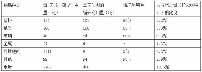 *由于數(shù)據(jù)采集時,將市內(nèi)工廠對從市外運(yùn)送來的金屬進(jìn)行的循環(huán)利用計算在內(nèi),所以循環(huán)利用量高于金屬廢物的產(chǎn)生量。