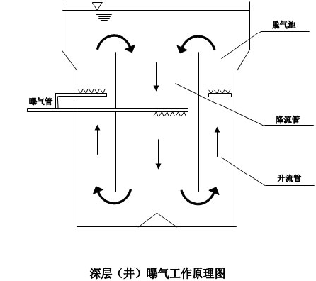 由于是在一個(gè)很深的液層內(nèi)曝氣充氧,它的運(yùn)轉(zhuǎn)方式和流體力學(xué)特性與傳統(tǒng)(淺層曝氣)方法有很大差異。