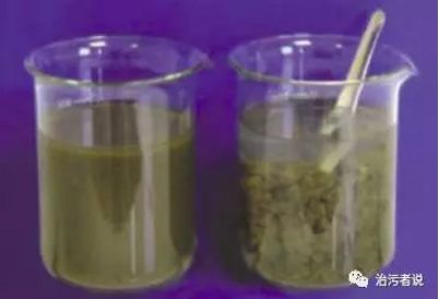 從上圖可以看到,生活污水處理廠的污泥中的污泥顆粒帶有負(fù)電荷(工業(yè)廢水中污泥顆粒會攜帶正電荷),在水中發(fā)生同性相斥作用,導(dǎo)致污泥無法凝聚到一起,在投入陽離子的PAM藥劑以后,PAM藥劑帶有與污泥顆粒攜帶的電荷相反的電荷,通過這些電荷的異性相吸作用,把污泥顆粒吸附凝集到一起,把成懸浮狀態(tài)的污泥顆粒變成更大體積的污泥顆粒,這些依靠化學(xué)作用凝聚到一起的污泥顆粒由于比重遠(yuǎn)遠(yuǎn)大于水,所以很容易在水中沉淀下來。