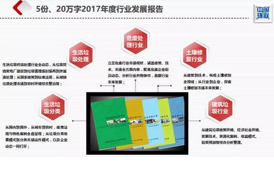 生活垃圾處理行業(yè)2017年度發(fā)展報(bào)告:該報(bào)告囊括生活垃圾終端處理行業(yè)動(dòng)態(tài),從垃圾焚燒發(fā)電廠到垃圾填埋場(chǎng)封場(chǎng)處理;從國(guó)家政策到標(biāo)準(zhǔn)法規(guī),從城鎮(zhèn)垃圾處理市場(chǎng)到農(nóng)村環(huán)境綜合整治等;