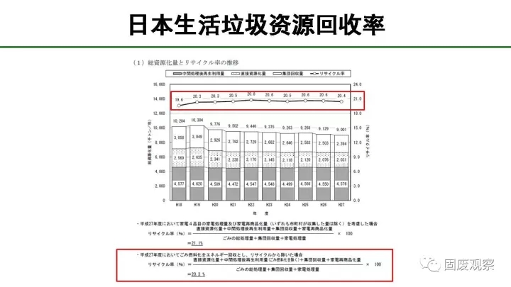 我們看下面這個(gè)日本的生活垃圾資源回收率計(jì)算公式,日本也才21%,我們能做到35%嗎?