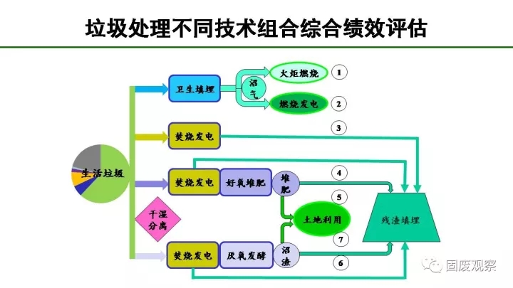 根據(jù)我們做的垃圾處理不同技術(shù)組合綜合績效評估,生活垃圾處理最理想的方式是通過焚燒、堆肥后最終讓垃圾回到土地利用,但是如果還無法為廚余找到土地回用出路的話,焚燒是目前階段最適合的方法,其在垃圾減量、溫室氣體減排、能量回收和穩(wěn)定化四個(gè)方面的綜合評估都遙遙領(lǐng)先。