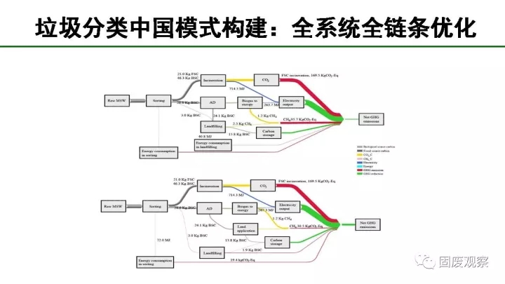 談垃圾分類的首要原則是物質(zhì)守恒和能量守恒。目前有些垃圾處理模式違背了物質(zhì)能量守恒原則,是不能可持續(xù)發(fā)展的。下圖就是我們從原理出發(fā),構(gòu)建垃圾分類的中國模式。