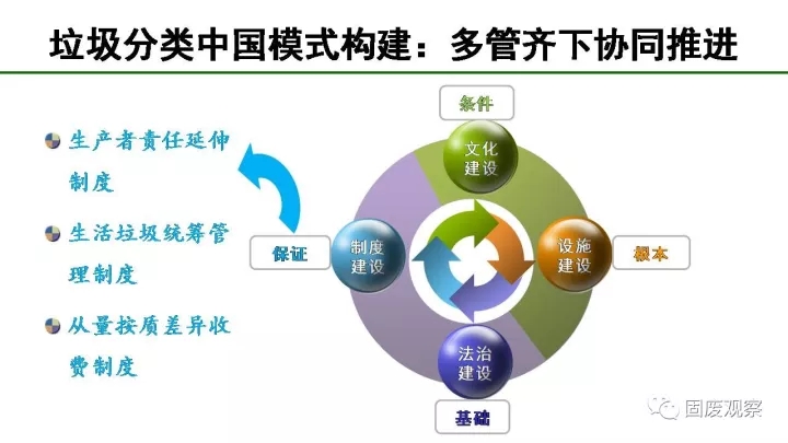 最后我們要多管齊下協(xié)同推進(jìn),我們要以法制建設(shè)為基礎(chǔ),以文化建設(shè)為條件,以制度建設(shè)為保證,以設(shè)施建設(shè)為根本。我也提出了三個(gè)制度去撬動(dòng)垃圾分類工作,包括生產(chǎn)者責(zé)任延伸制度、生活垃圾統(tǒng)籌管理制度、從量按質(zhì)差異收費(fèi)制度。通過精巧的制度設(shè)計(jì),可以很好地撬動(dòng)垃圾分類工作。