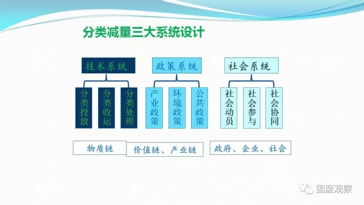 第二部分主要介紹2010年以后上海市推進(jìn)垃圾分類的主要做法。2010年,世博會(huì)臺(tái)灣館給我們展示了一個(gè)讓人震撼的垃圾分類結(jié)果,上海開(kāi)始火熱的推動(dòng)垃圾分類工作。基本思路提出了規(guī)劃引領(lǐng)、政府主導(dǎo),市場(chǎng)運(yùn)作、社會(huì)參與。提出這些思路是因?yàn)榈浆F(xiàn)階段,更加注重到了解決全體系問(wèn)題對(duì)垃圾分類的重要性。