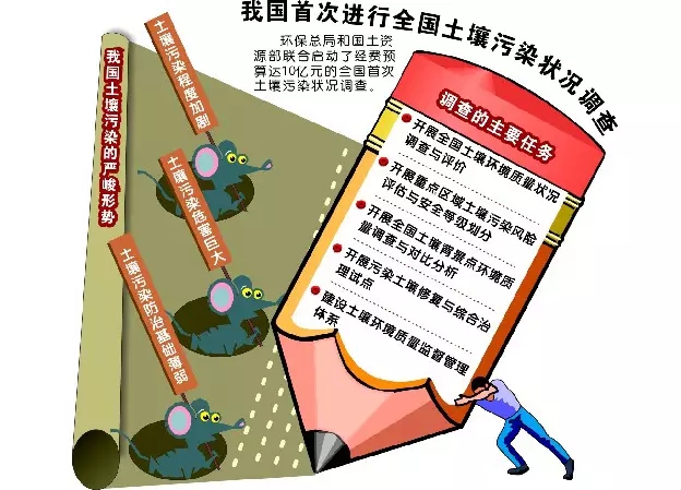 今年4月17日發(fā)布的《全國土壤污染狀況調(diào)查公報》顯示:全國土壤環(huán)境狀況總體不容樂觀,部分地區(qū)土壤污染較重,耕地土壤環(huán)境質(zhì)量堪憂,工礦業(yè)廢棄地土壤環(huán)境問題突出,全國土壤污染超標率達16.1%。污染類型以無機污染物為主,南方土壤污染重于北方,長三角、珠三角、東北老工業(yè)基地等部分區(qū)域土壤污染問題較為突出,西南、中南地區(qū)土壤重金屬超標范圍較大。總體上呈現(xiàn)出新老污染并存、無機有機復(fù)合、超標范圍廣闊的嚴峻局面,因此從國家層面重視土壤污染問題、啟動土壤污染修復(fù)已經(jīng)刻不容緩。