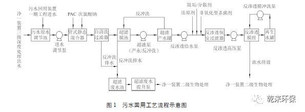 1.1 凈一裝置污水回用流程簡(jiǎn)介:凈一裝置污水回用采用雙膜工藝,即超濾反滲透系統(tǒng)。目前裝置有 6 套超濾系統(tǒng)和 6 套反滲透系統(tǒng),具體流程圖見(jiàn)圖 1。