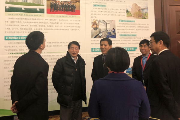 中國建筑材料聯(lián)合會(huì)、水泥協(xié)會(huì)喬龍德會(huì)長(zhǎng)和科技部社會(huì)發(fā)展科技司鄧小明副司長(zhǎng)參觀海螺創(chuàng)業(yè)展板