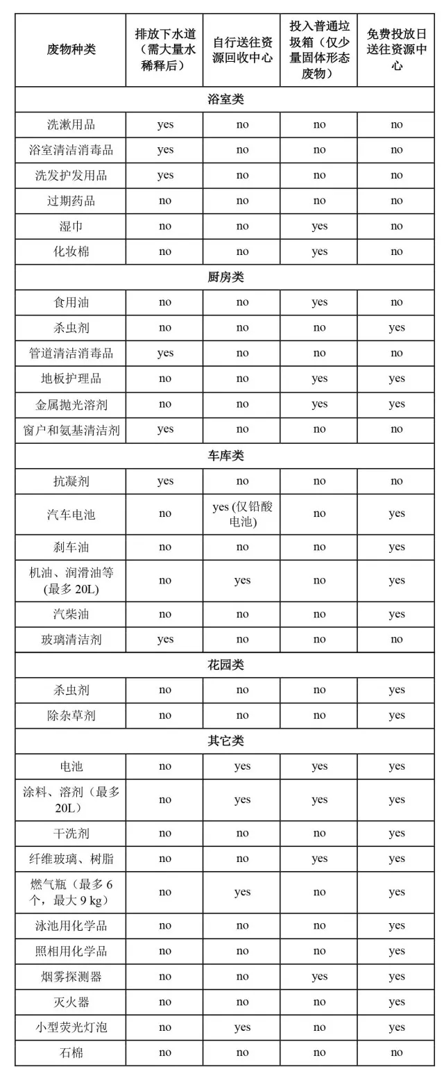 對于大件垃圾、危險廢物,可按照規(guī)定送至資源處理中心。如錯過或有大量垃圾需要處理,可以在網(wǎng)站或電話通知市政部分,請求單獨收運(yùn)。