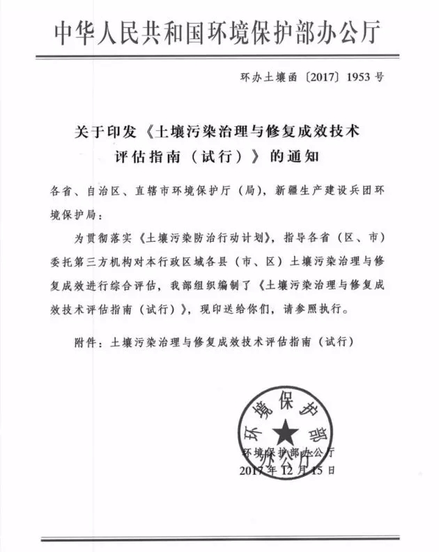 為指導(dǎo)地方委托第三方開(kāi)展治理與修復(fù)成效評(píng)估工作,推動(dòng)落實(shí)《土壤污染防治行動(dòng)計(jì)劃》,完成土壤污染治理與修復(fù)目標(biāo)任務(wù),保障農(nóng)產(chǎn)品質(zhì)量和人居環(huán)境安全,根據(jù)《中華人民共和國(guó)環(huán)境保護(hù)法》和《土壤污染防治行動(dòng)計(jì)劃》等法律和文件的規(guī)定,日前,環(huán)保部印發(fā)了《土壤污染治理與修復(fù)成效技術(shù)評(píng)估指南(試行)》。