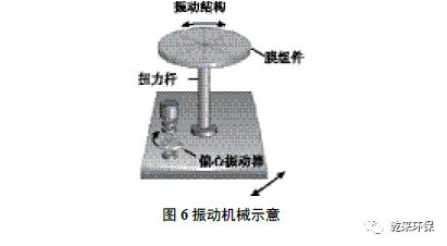 整個膜組件被置于一組振動機械上。振動機械利用馬達和偏心軸承,產(chǎn)生約50 Hz/s 的振動頻率傳到整個膜組,使膜面產(chǎn)生振動。膜面通過往復(fù)振動,在膜面產(chǎn)生強大剪切力,鹽分難以停留在膜面上,可有效防止膜面產(chǎn)生表面結(jié)晶。在高鹽濃度下,結(jié)晶和未結(jié)晶的鹽分被推到濃液口外排。振動機械示意見圖6。