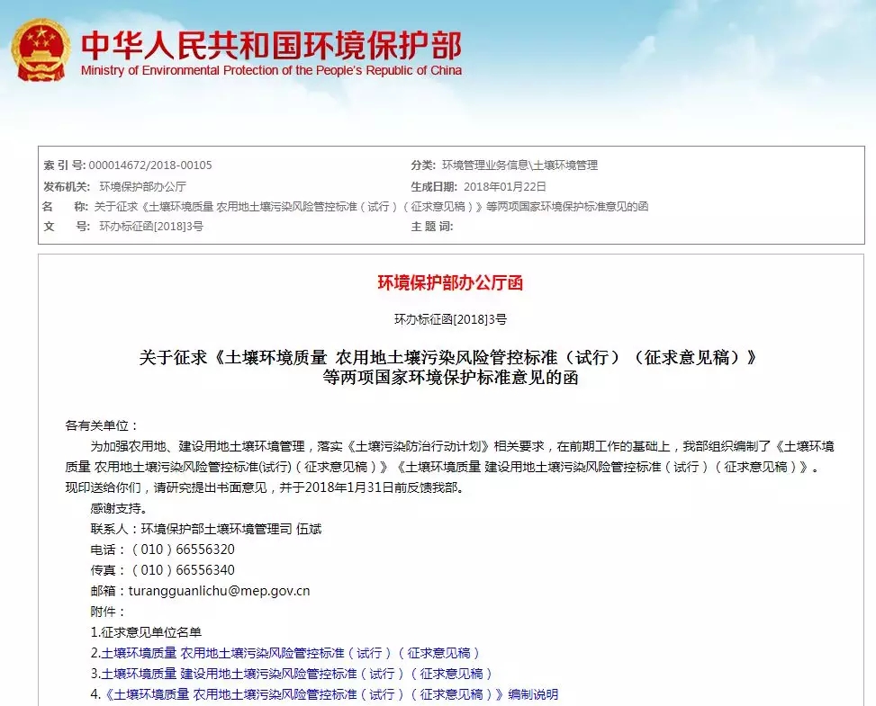 環(huán)保部辦公廳近日發(fā)布關(guān)于征求《土壤環(huán)境質(zhì)量 農(nóng)用地土壤污染風(fēng)險管控標準(試行)(征求意見稿)》等兩項國家環(huán)境保護標準意見的函