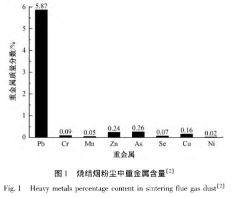 燒結(jié)機(jī)頭煙氣中的多種重金屬,如Pb、Zn、As、Cu、Cr等,主要富集煙粉塵中(圖1)。在凈化過(guò)程中,一部分被除塵器捕集,作為返灰配入原料中重新燒結(jié),使得燒結(jié)礦中重屬含量增高;一部分經(jīng)由脫硫設(shè)備富集在脫硫副產(chǎn)物中,影響其安全利用;剩余部分會(huì)隨著煙道排,對(duì)周邊環(huán)境造成重污染。較高比電阻的重金屬氧化物,會(huì)在電極上形成絕緣層,降低電除塵器的除塵效率,影響正常排灰。
