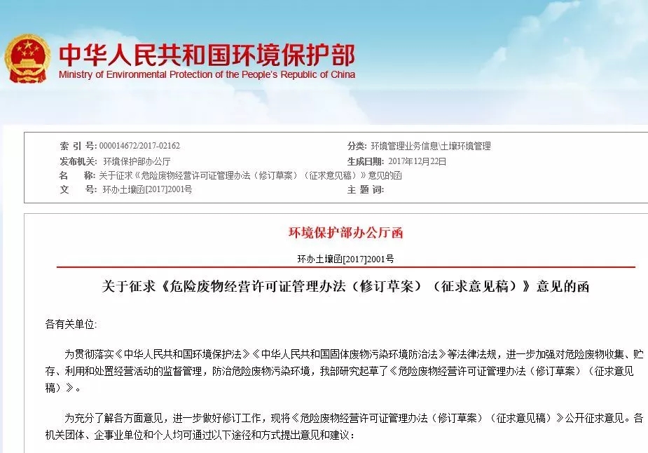 環(huán)境保護(hù)部公布的“關(guān)于征求《危險(xiǎn)廢物經(jīng)營許可證管理辦法(修訂草案)(征求意見稿)》意見的函(環(huán)辦土壤函[2017]2001號(hào)),其中,第三十九條 以下危險(xiǎn)廢物利用或者處置活動(dòng)免于領(lǐng)取危險(xiǎn)廢物經(jīng)營許可證: