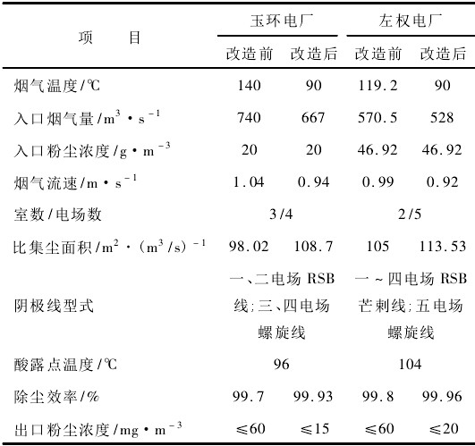 表1 玉環(huán)電廠與左權(quán)電廠電除塵器改造前后參數(shù)