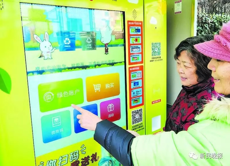 “綠色賬戶積分兌換機(jī)”前,上海居民用積分兌換禮品。新民晚報(bào)圖